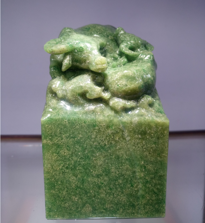 2. "颜色":绿色是雅安碧玉的主要颜色,其中以翠绿色为最佳,颜色越鲜艳、均匀,收藏价值越高。